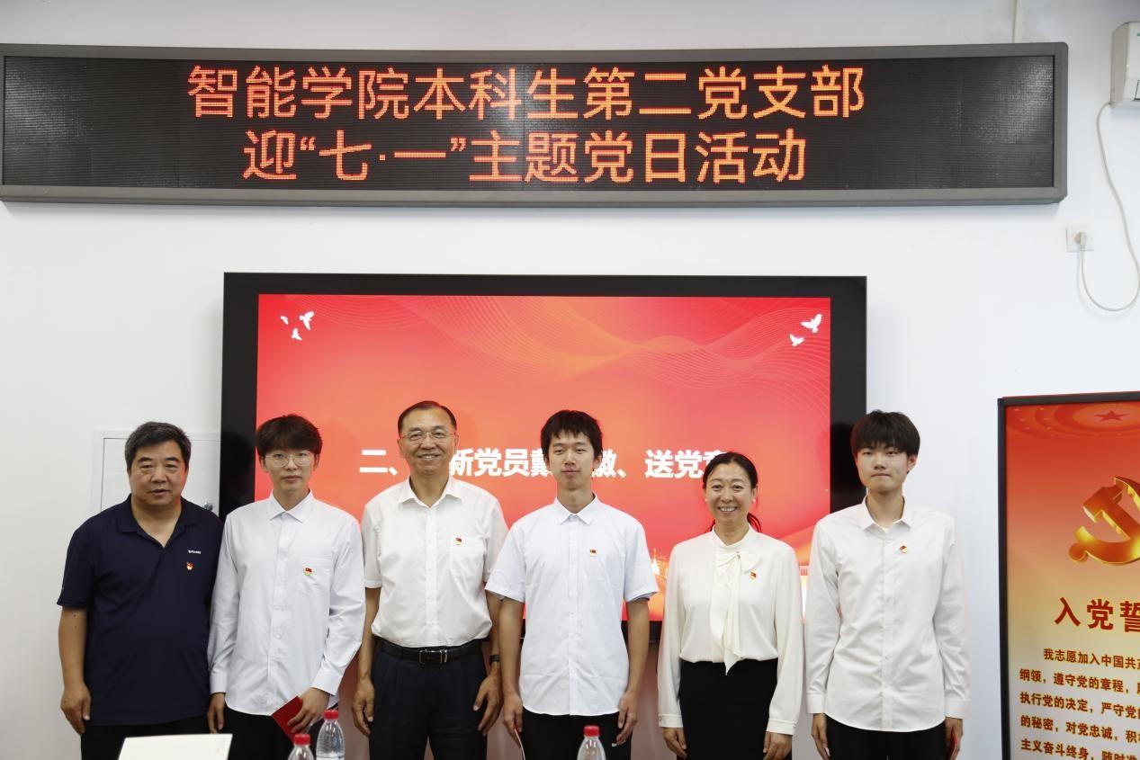 在“守党纪 树正气,绽放青春本色 彰显榜样力量”迎七一主题党日活动中,大家集体观看了本科生第二党支部党纪学习教育宣誓视频。仲丛生为新发展党员佩戴党徽、颁发党章,为学生党员颁发“政治生日”卡。新发展党员面对党旗庄严宣誓,老党员重温了入党誓词。