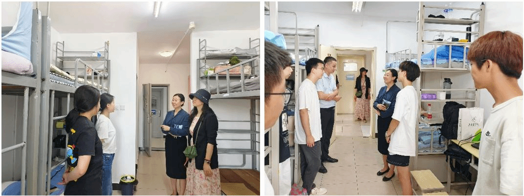 下午5时许,院领导与新生辅导员、班主任前往5号和7号学生公寓,深入宿舍走访慰问新生,与同学们亲切交谈,倾听同学们的心声,了解同学们的诉求,同时提醒同学们尽快调整自身状态,以适应大学的学习和生活。