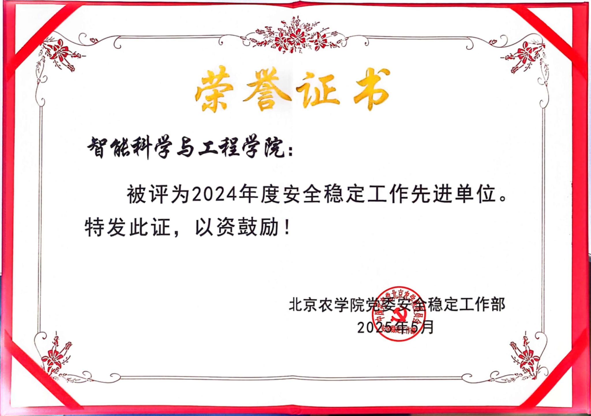 近日,智能学院荣获 “2024 年度安全稳定工作先进单位”称号。长期以来,智能学院始终将安全稳定工作视为学院工作的重点,秉持 “预防为主、常抓不懈”的原则,多管齐下全方位筑牢校园安全稳定防线。这一荣誉不仅是对学院2024年安全稳定工作的充分肯定,更是续写“平安校园” 建设新篇章的强劲动力。