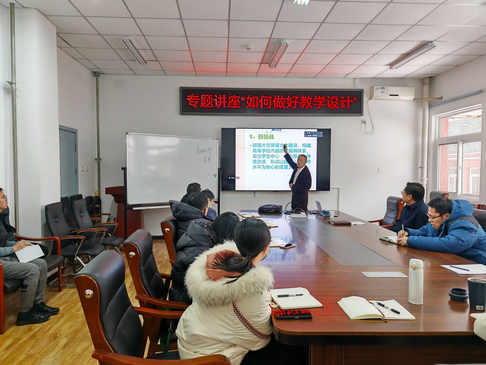 学院盛情邀请,孙祎振教授倾情授课,为学院青年教学团队带来精彩专题讲座 2023年12月13日(本周三)上午10点,我院邀请到了学校督导组长孙祎振教授,为我们带来了一场精彩的专题讲座——“如何做好教学设计”。孙教授以其深厚的学术背景和丰富的教学经验,为在场师生带来了许多宝贵的建议和启示。 讲座在学院会议室内举行,吸引了众多教师参与。孙教授以生动活泼的方式,从教学设计的理念、方法、实践等方面进行了深入浅出的讲解。他强调了教学设计在提高教学质量、促进学生学习过程中的重要性,并分享了一些实用的教学技巧和策略。 孙教授指出,教学设计是教师教学工作的一个重要组成部分,它不仅关乎教学效果,更关乎学生的学习体验和成长。他建议教师们要以提高教学质量为核心,立德树人为根本,内涵式发展。同时,他强调了教师自身素质的提升,鼓励教师们不断学习、反思、创新,以适应教育发展的需要。 此次讲座是学院推动教育教学改革的重要举措之一,也是为学院的青年教师提高自身教学水平提供了一个平台和机会,我们将继续关注和支持教师们的专业发展,为学生提供更加优质的教育资源。我们相信,在大家的共同努力下,学院的教育教学工作将迈上新的台阶。