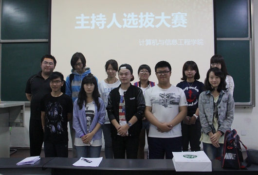 9月18日晚8点半计算机与信息工程学院在教B202举办了以“绽放青春活力,寻找主持新星”为主题的主持人大赛,学生会主席团蔡淑芳、韩圣其、安爽,团总支副书记张倩怡,以及学生会各部门负责人担任评委。