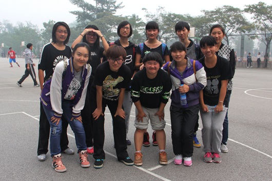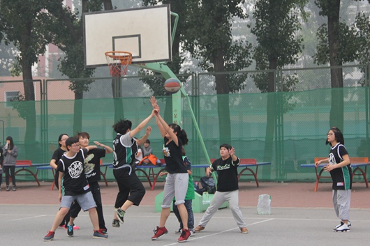 10月9日下午,我学院女子篮球队的第一场校级联赛在篮球场开战。院学生会主席蔡淑芳、副主席安爽、体育部长杨博文等学生会干部和同学到场,为女队员们加油。