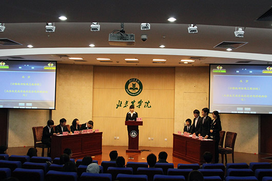本场辩论赛的开始,首先由正反双方一辩各自进行立论阶段的辩论,我方一辩蔡淑芳同学冷静沉稳、有凭有据的陈述了反方观点;接下来的攻辩和自由辩论阶段是本场辩论赛最精彩的部分,我方二辩和三辩反应灵敏,迅速应对,表现出了很强的应变能力,赢得了在场观众的阵阵掌声;最后的总结陈词阶段,我方四辩全面的总结了本场辩论过程中反方的主要辩论依据和观点,更加巩固了本方对“大学生毕业后应该继续深造”这一观点的论证。双方辩论时间结束后,张思明老师对本场辩论赛做了点评,对我学院各位辩手的精彩表现表示肯定。