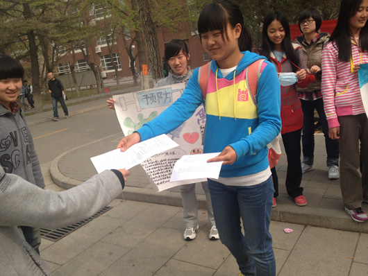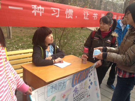 20122072-1团支部以“我的中国梦之青春关爱篇”为主题,通过关于H7N9相关内容的有奖问答和讲解,让大家意识到H7N9的危害性,并了解如何预防它,此外我们还会免费发给同学们口罩,提醒他们从日常细节注意自己的健康。