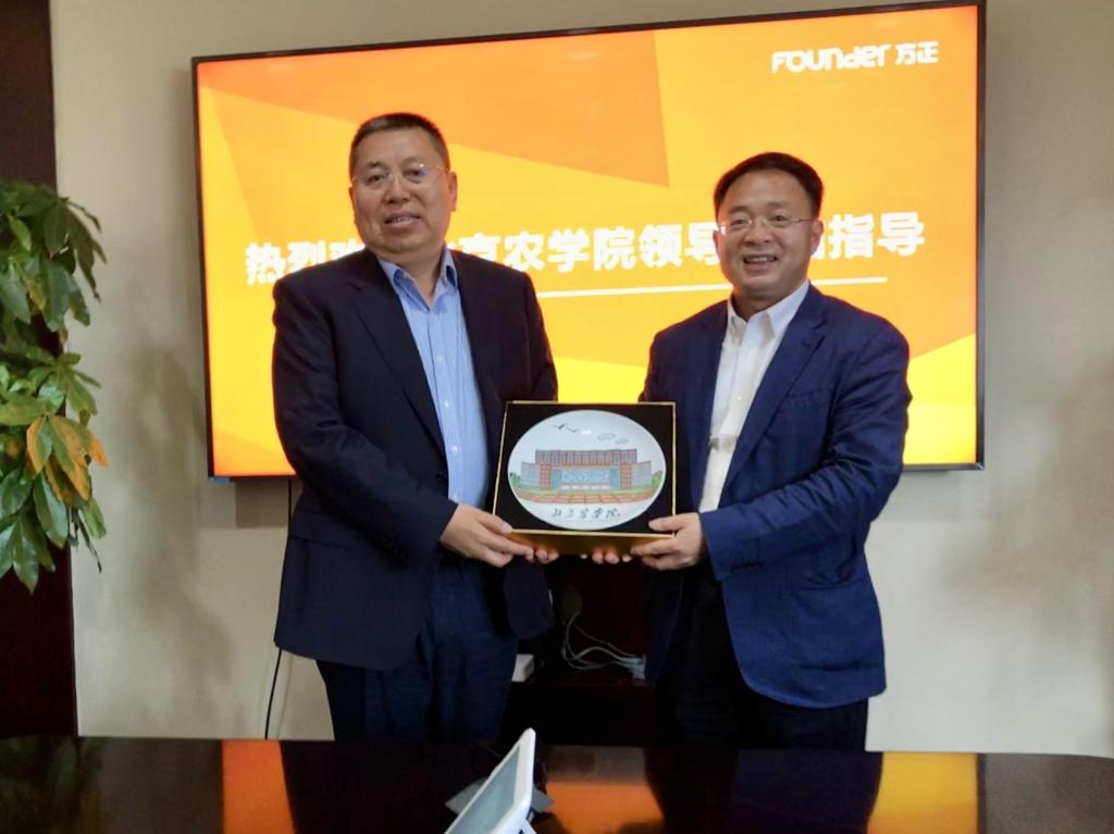 徐践介绍了计信学院的专业设置、学院定位和人才培养等情况,并希望与方正国际软件有限公司在智慧农业和建设实习基地等方面开展进一步的合作交流。韩宝平表示,搭建校企合作平台,可以最大限度的满足企业对技术型专门人才的要求,可以使学校的培养目标和企业需求对接,实现培养和就业的统一,进一步提高就业质量。辅导员宁宁对学院今年毕业生的基本情况进行了详细介绍,并将优秀毕业生简历推荐给企业,切实为毕业生寻求就业岗位。