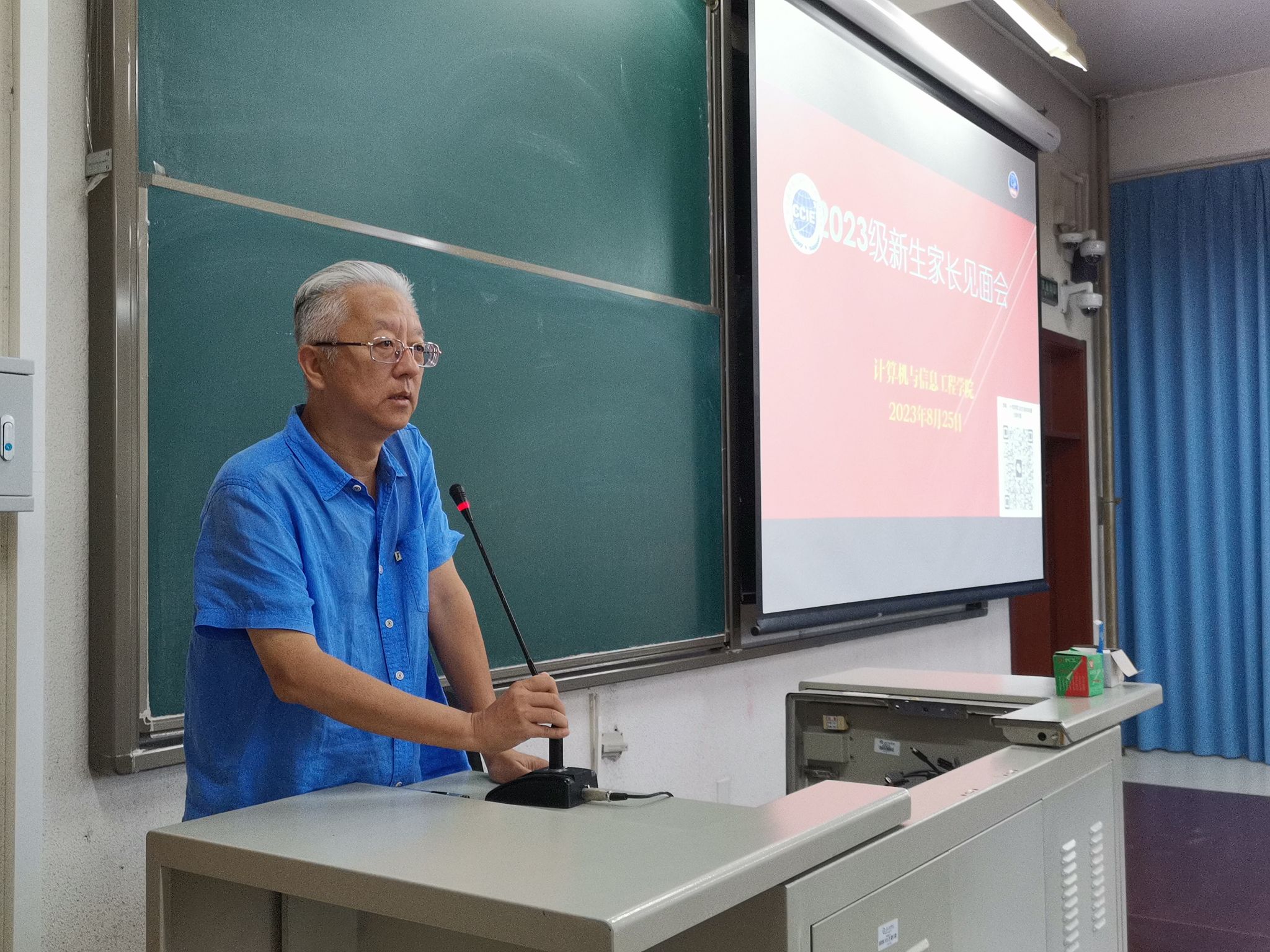 8月25日上午,计算机与信息工程学院在教学楼B座201教室召开2023级新生家长见面会。党总支书记韩宝平,院长徐践,党总支副书记、副院长刘京威,教学副院长魏占勇,大数据技术与应用系主任张娜,设施农业科学与工程系副主任窦海杰,2023级新生班主任郭成魁,朱晓冬,樊正强参会。会议由刘京威主持。