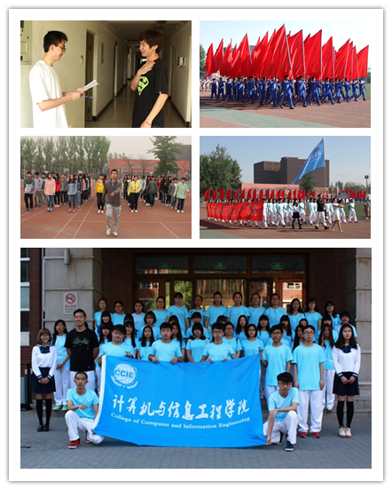 辛阳同学和丰帅媛同学从未有过大型团体操表演组织的经验,她们深知自己的责任重大,不仅多次组织召开各学院负责人会议,积极与老师讨论训练形式和时间,而且与本部门成员一起做好每一次训练的组织工作。她们说,由于两个节目都分别有七个学院的学生参与,各学院的课表均不相同,所以,训练中的最大困难就是时间问题,她们想尽各种办法去尽量协调各学院的时间,确保训练的正常进行。在旗操的训练中,由于队形的变化非常多,许多学生记不住队形和位置,辛阳同学及时和宁老师进行沟通,为每一名学生编号确定位置,并把训练的过程录制成视频发给大家,从而保证了训练的质量。她们表示,这次表演的顺利组织离不开各学院负责人的认真组织以及全体参演人员的大力支持。