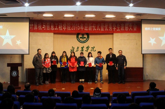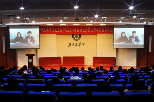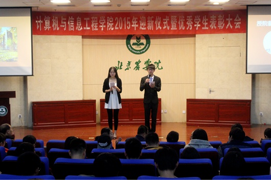 12月8日,计算机与信息工程学院2015年迎新仪式暨优秀学生表彰大会在图书馆报告厅隆重举行。学院党政领导班子、班主任、辅导员、教师代表、获奖学生以及2015级全体学生参加大会。