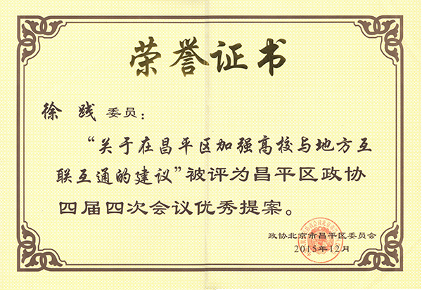院长徐践荣获昌平区优秀政协委员等荣誉称号