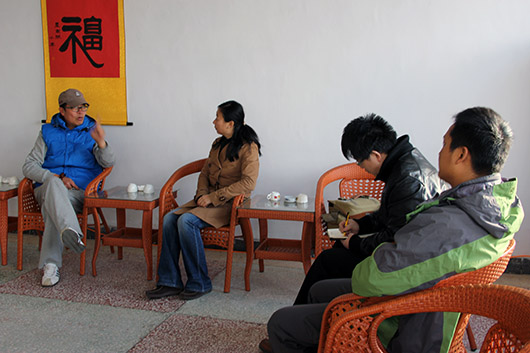 北京市阳光关怀果树盆景专业合作社总经理陈小年热情接待大家。陈总首先向大家介绍了果树盆景合作社的建设情况和未来的规划设计,他说,合作社计划将果树盆景项目普及到全村,让村民实现“居家就业”。他希望未来可以建立一个计算机网络与手机短信相结合的信息平台,便于村民遇到各种种植问题时能够及时反馈和咨询,并希望与计算机学院进行深入合作,开发信息平台。