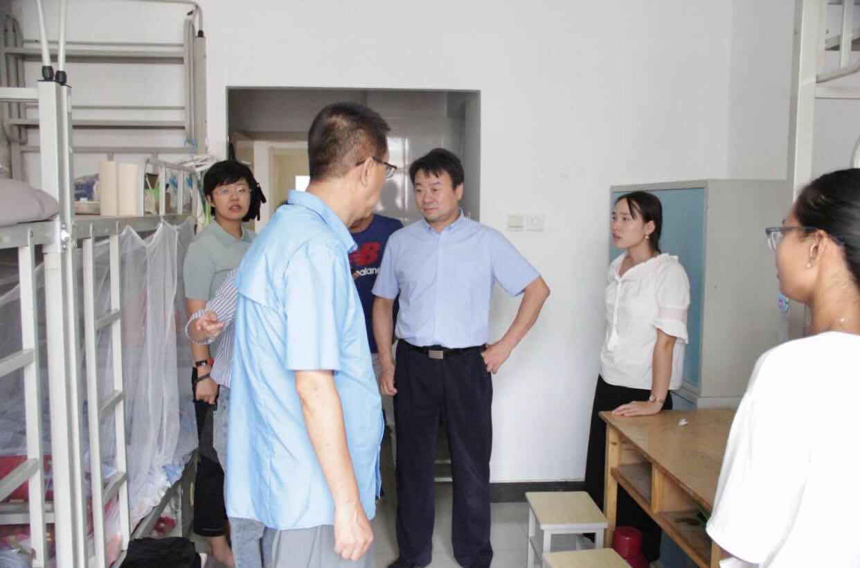 下午3点,学院领导和老师到每一间新生宿舍进行了慰问,对同学们的吃住习惯与否一一进行了询问,并叮嘱同学们注意宿舍安全,按时参加入学教育。
