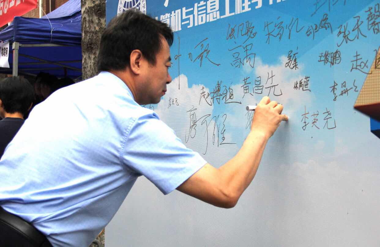学生会为本次迎新活动准备了签名墙展板,让每一位新生在签名墙上留下自己的名字,并由学长学姐们送上小花,在签名墙前合影留念。学生助理们负责引导新生到宿舍、帮助新生搬运行李,为新生提供了热情、周到、细致的服务。