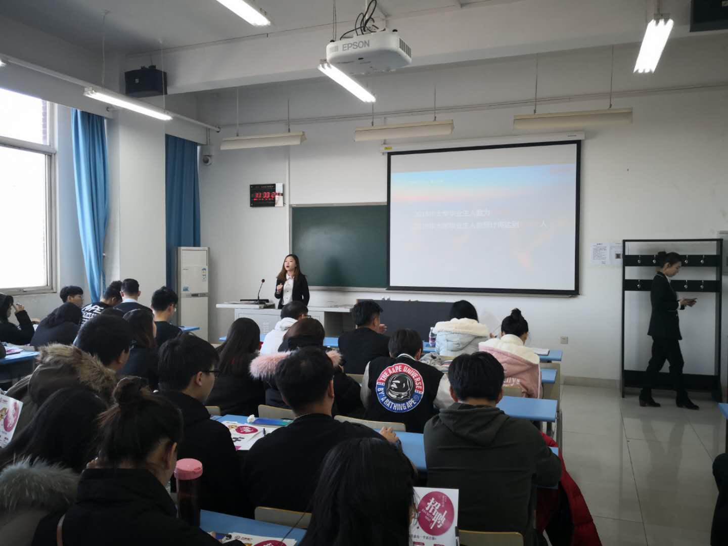 随后北京兴商地产人力资源中心进行了专题宣讲,从计算机在房地产中的应用、毕业生自我价值的实现及企业文化介绍、拟招聘岗位等方面为大家进行了宣讲。
