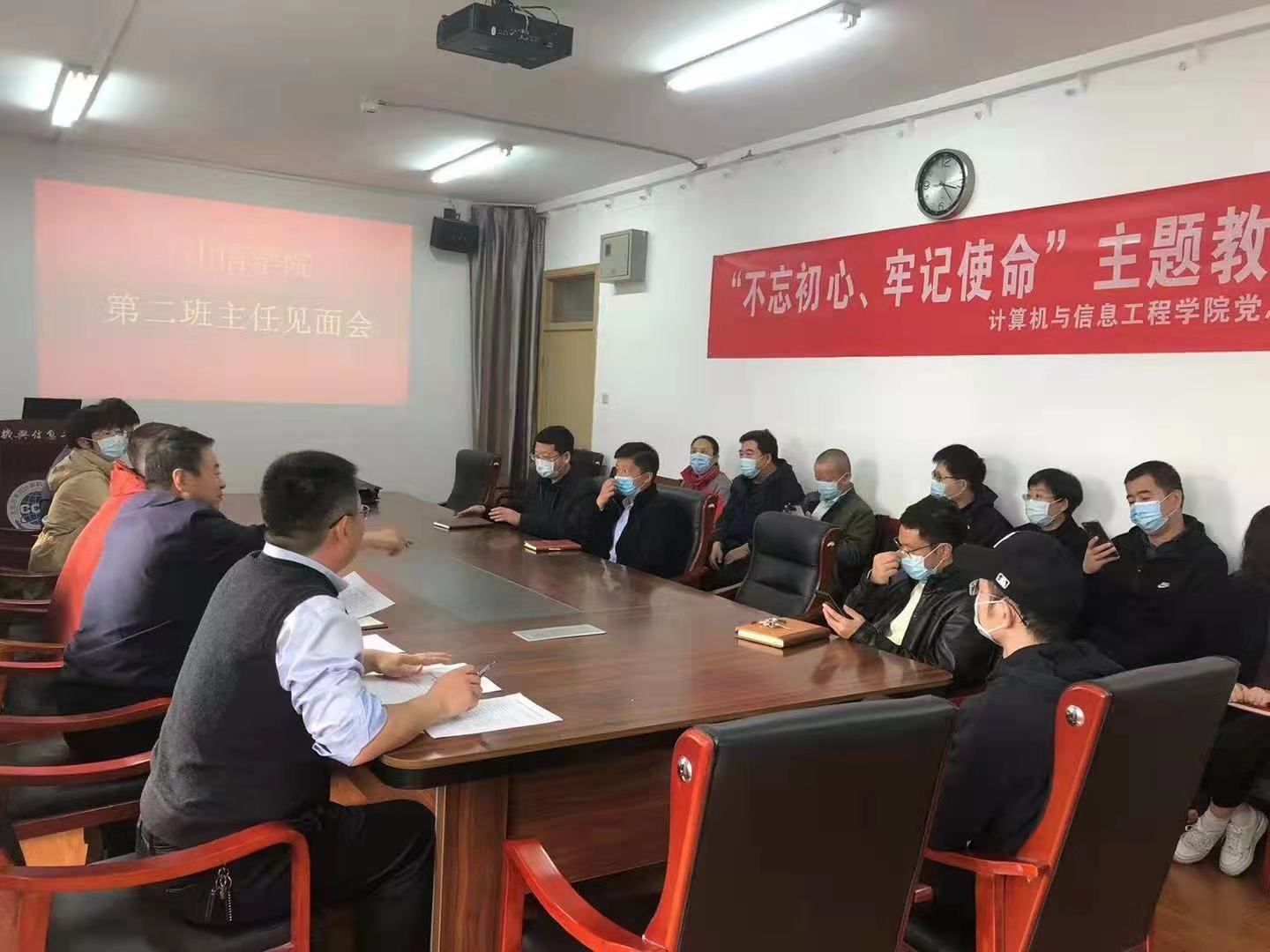 院长徐践首先对担任计信学院第二班主任的各位职能部门处级领导表示热烈欢迎。他高度认同第二班主任制度的实施的目的和意义,要求学院第一班主任尽快与第二班主任对接,主动汇报本班情况,使第二班主任尽快熟悉了解学生情况。今后工作中要重点关注学生安全、心理等思想政治工作,有特色的开展班级管理工作。