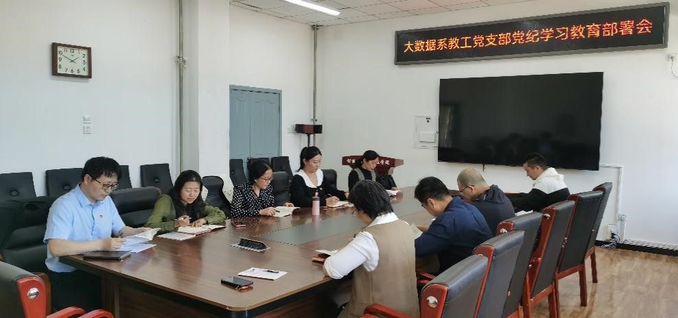 为贯彻落实学校党委党纪学习教育动员部署会要求,切实开展警示教育和党纪学习,4月24日下午,大数据技术与应用系教工党支部召开了党纪学习部署会、警示教育会和党纪教育专题学习会。会议由支部书记廉世彬同志主持,支部全体党员参加。