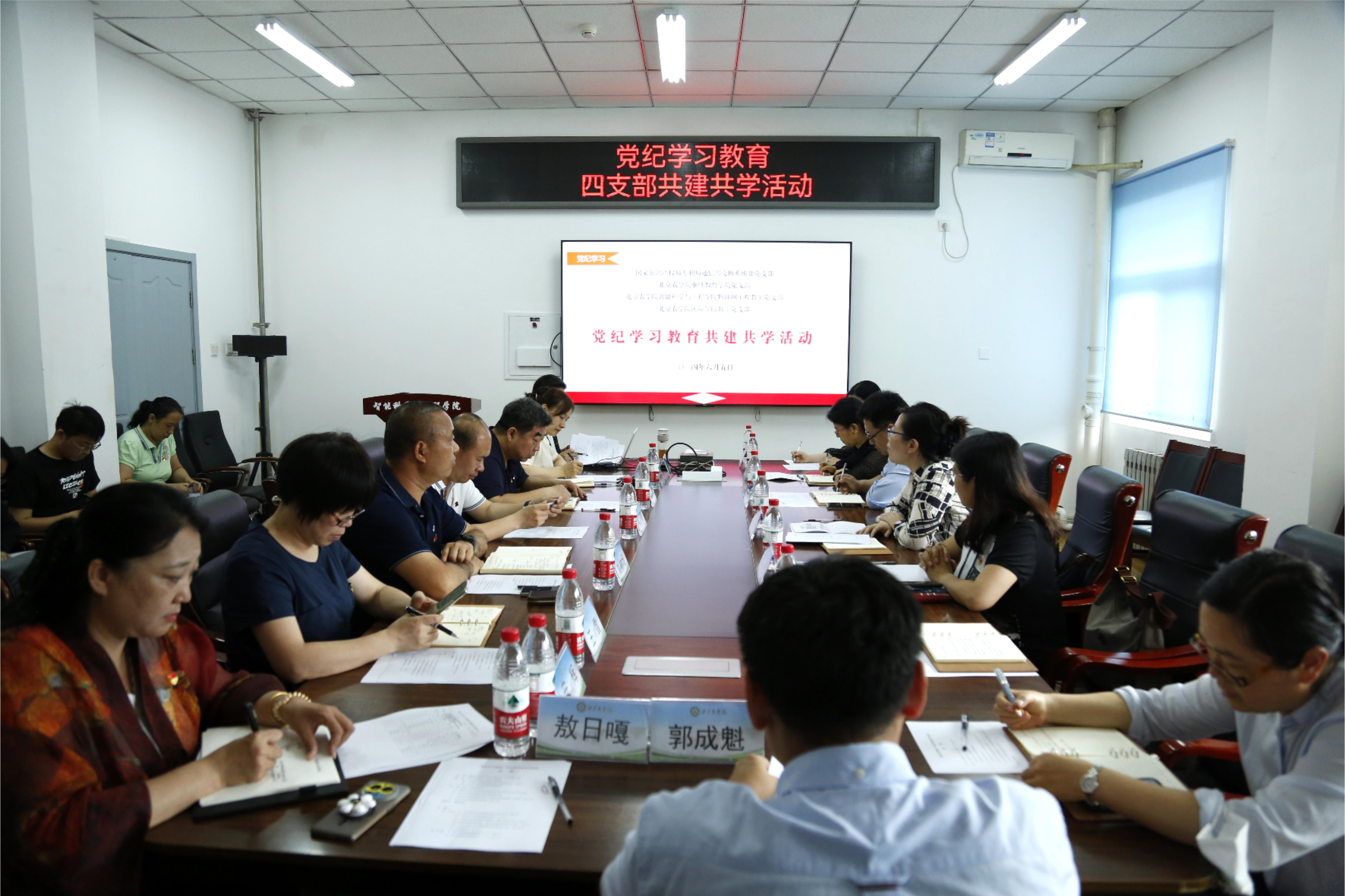 为进一步提升党纪学习教育成效,教育引导党员干部强化纪律意识,真正做到学纪、知纪、明纪、守纪,落实校党委关于机关党支部与学院党支部结对共建的要求,2024年6月5日下午,智能学院物联网工程教工党支部、机关继续教育学院党支部、国际学院教工党支部和国家知识产权局交换系统处党支部四个党支部联合开展“党纪学习教育”共建共学活动。