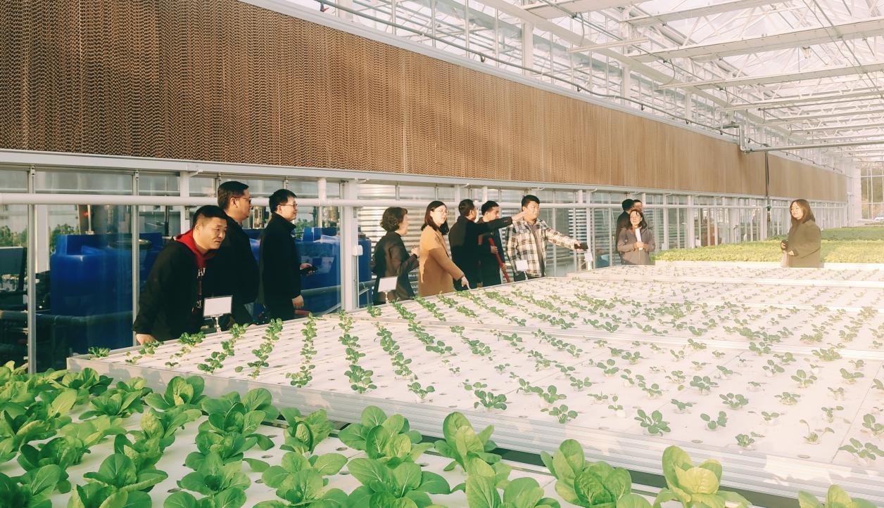 随后,大家共同参观了学校的智能温室,负责教师介绍了智能温室的运行模式以及基于智能温室开展的专业实践教学活动和劳动教育特色课程等情况。