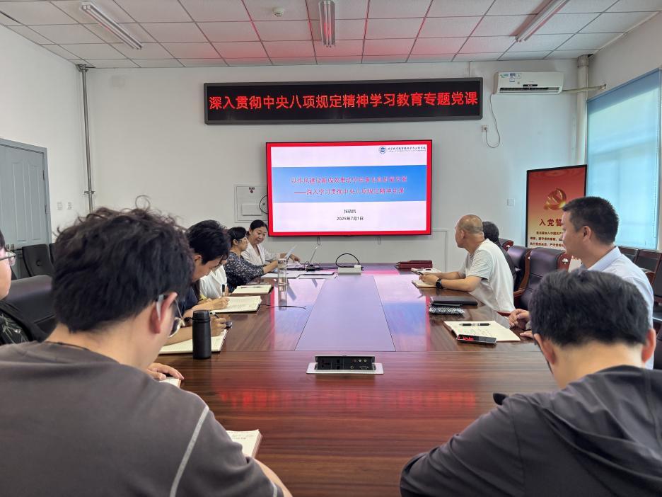 张晓凤围绕党课主题,从强化理论学习、筑牢思想根基;加强警示教育、严守廉政底线;深入查摆问题,学查改一体推进;以作风建设新成效推动学院事业高质量发展四个方面讲授专题党课。