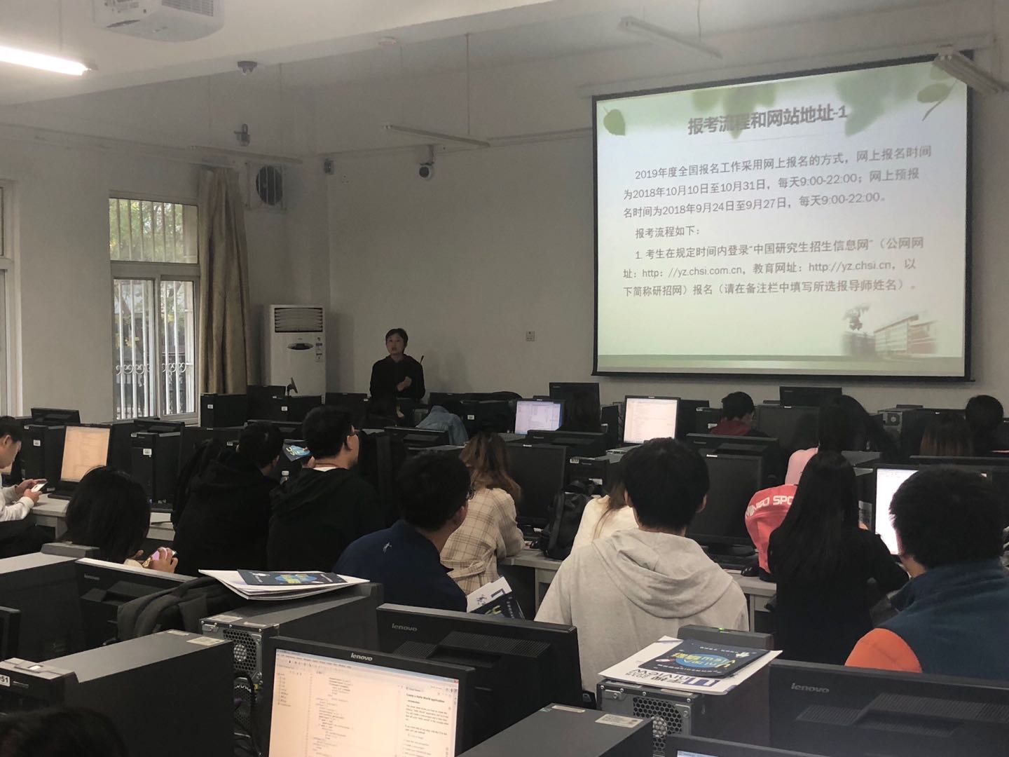 10月18日下午在和10月20日下午,在计算机实验中心和4015会议室,分别为本校大三学生和太原科技大学的同学们集中开展招生宣讲工作。宣讲内容包括学位点概况、2019年招生政策、奖助政策等。